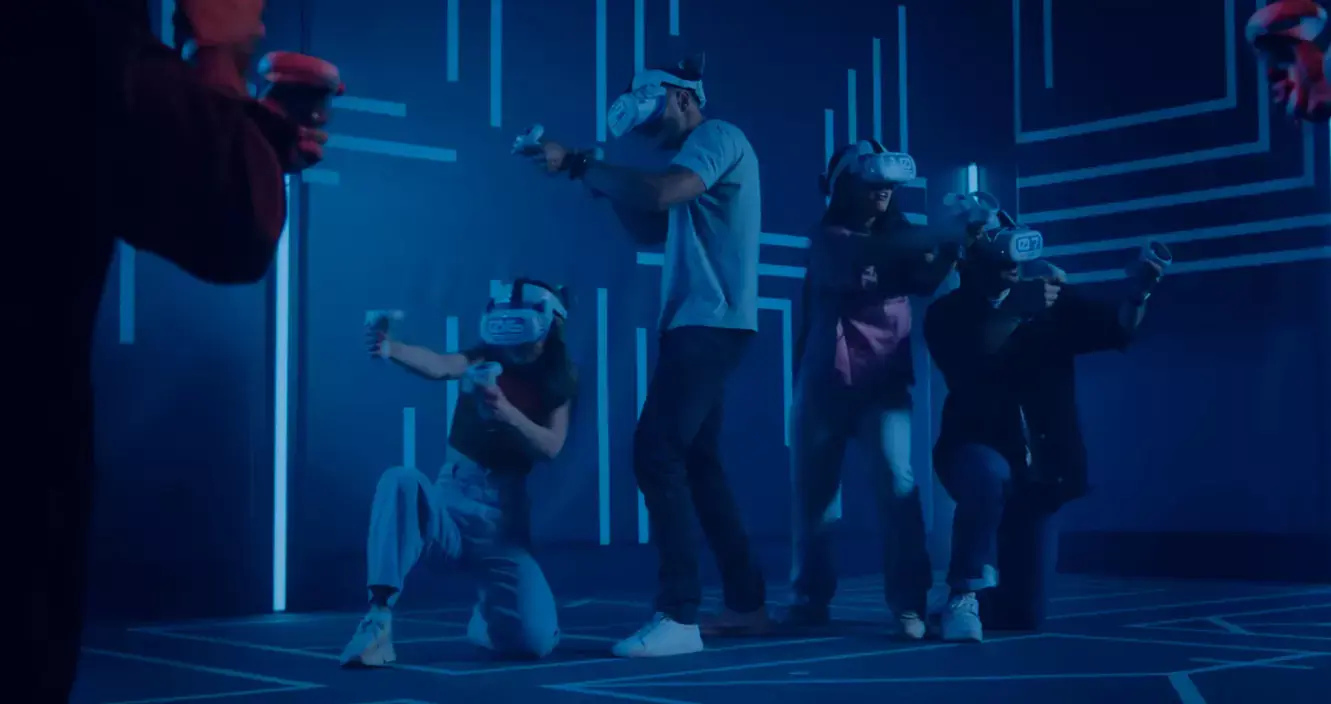 Играйте команда на команду в виртуальной реальности на арене 100 м2